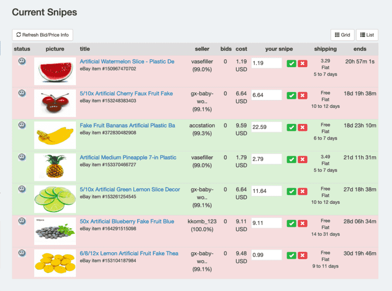 Double-check seller rep, shipping, and bid history before placing your snipe.