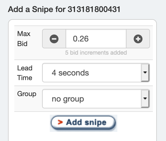 Add snipes directly from an eBay item page.